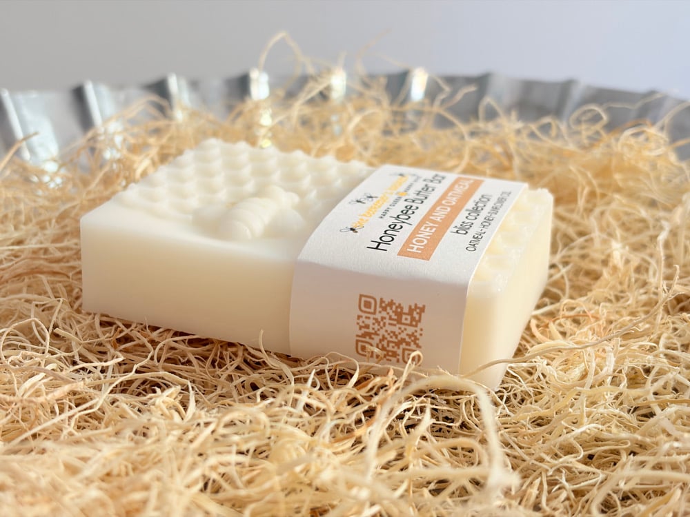 Each bar is 3.5 oz of triple butter goodness and honeybee design.